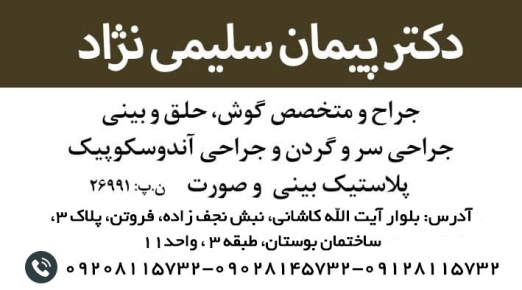 ۲ماه پیش عمل بینی انجام دادم پیش دکتر سلیمی نژاد واقعا عالی بود از عمل بینیم خیلی راصیم