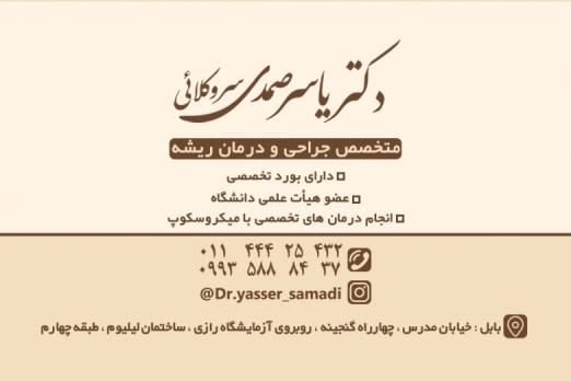 آدرس: بابل , خیابان مدرس , چهارراه گنجینه , روبروی آزمایشگاه رازی , ساختمان لیلیوم , طبقه چهارم