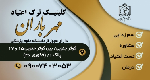 **کلینیک ترک اعتیاد مهر باران** با همکاری پلتفرم **پزشکان خوب**، امکان **رزرو نوبت آنلاین، مشاوره و دسترسی آسان** به خدمات ترک اعتیاد را برای مراجعهکنندگان فراهم کرده است.