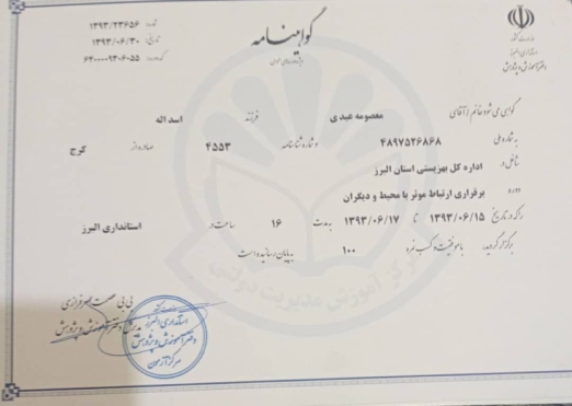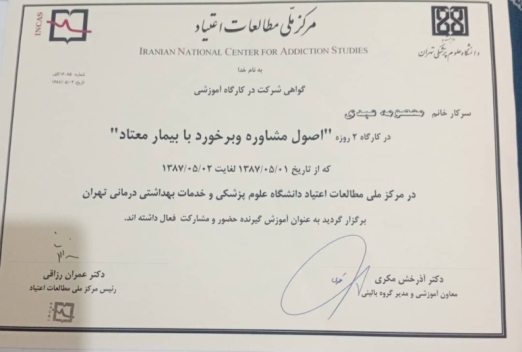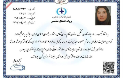 دارای پروانه اشتغال تخصصی از نظام روانشناسی و مشاوره ایران به شماره:۲۸۹۰۲
