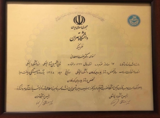 44.استاد ناظر امتحانات دانشجویان گروه کودکان دانشگاه علوم پزشکی تهران.